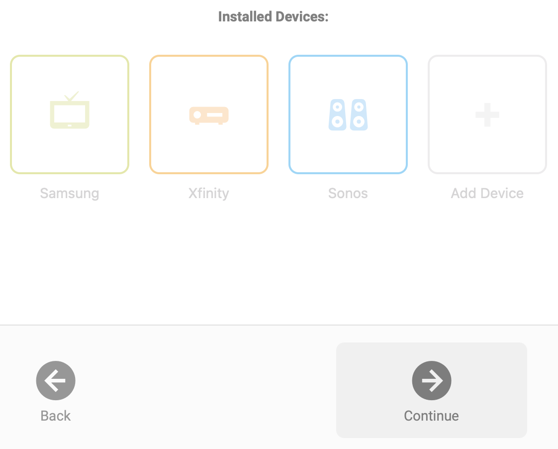 Each Activity can have up to 8 Devices attached to it. So a sample Activity might be “Play Video Games.” You attach your TV, your gaming console, and maybe your sound bar or AV receiver.
